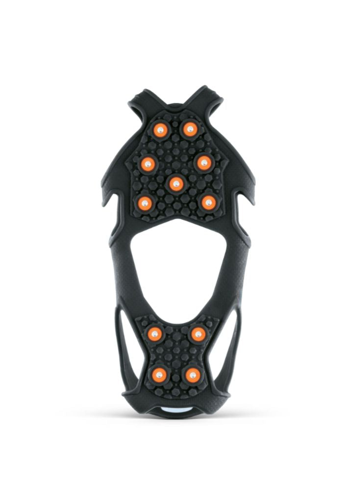 Säkra halkskydd för både fotblad och häl utvecklad för att ge optimalt grepp under promenad eller löpning på is- och snöunderlag i blandad terräng. Elva sammanlänkade och ingjutna dobbar av härdat stål och reflex på hälen. Stabil, smidig och säker konstruktion.