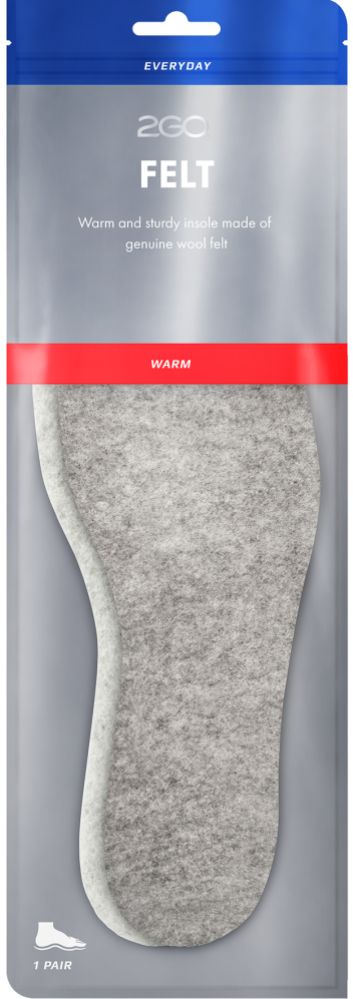 Varm och behaglig filtsula tillverkad av äkta ull. Passar alla tuper av skor och kan användas hela året. Undersidan är räfflad med antiglid.