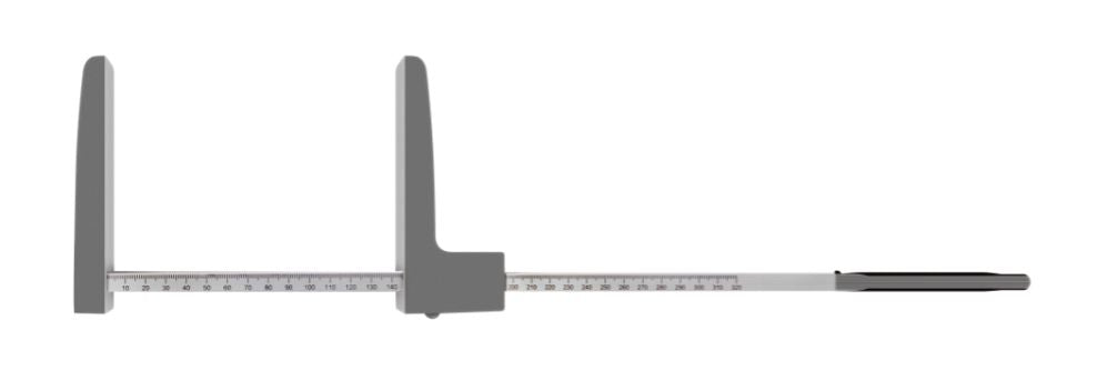Avsedd för att mäta fotens längd. På fotmätaren finns måttangivelser i engelska sizes, franska stick samt millimeter/centimeter. Måttangivelse finns också på kortsidan för liggande avläsning.