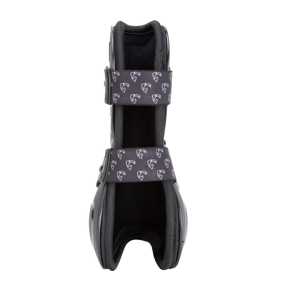 Stötdämpande senskydd som skyddar benens mest utsatta områden, samti-digt som hästens egen känsla och rörlighet bevaras. Elastiska remmar med knappknäppning. samtidigt som hästens egen känsla och rörlighet bevaras. Elastiska remmar med knappknäppning.