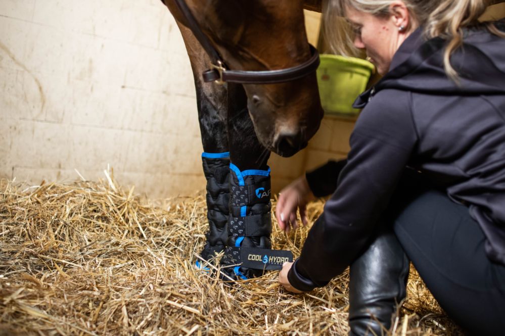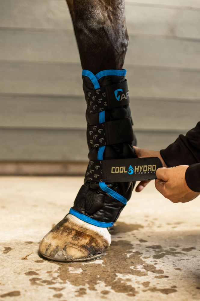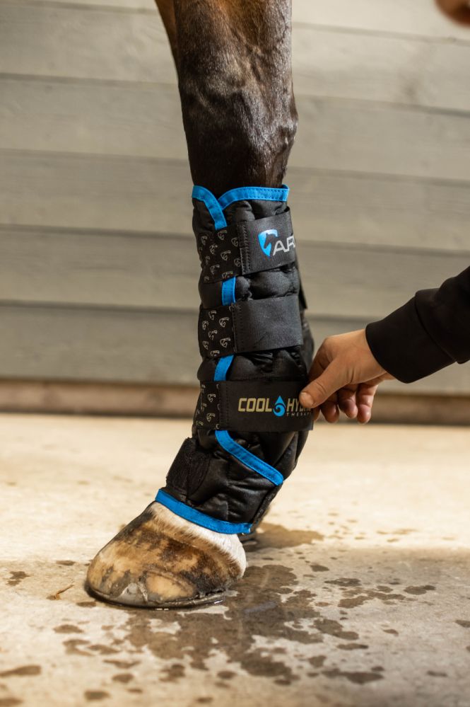 Kallvattenterapi i form av ett benskydd. Kylskyddet innehåller mikrokristaller som omvandlas till en kylande gel när de blötläggs. Kristallerna fyller ut quiltade tomrum i tyget och bildar en mjuk gelkudde som omsluter alla delar av benet när beskyddet sitter på. Denna kalla gelkompress ger stöd för minskad svullnad och blåmärken, kyler senor efter träning och behandlar mjukdelsskador. Smidig kardborrknäppning. Kladdfri och återanvändningsbar - gelen är innesluten i tyget och återgår till mikrokristaller när den torkar. Hästen bibehåller sim rörelsefrihet under behandlingen. Kommer i 2-pack.