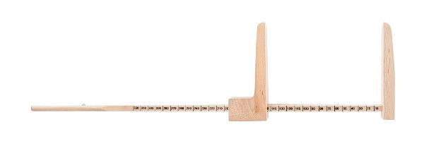 Avsedd för att mäta fotens längd. På fotmätaren finns måttangivelser i engelska sizes, franska stick samt millimeter/centimeter. Måttangivelse finns också på kortsidan för liggande avläsning.
