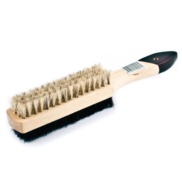 Dubbelsidig skoborste i trä med naturborst.