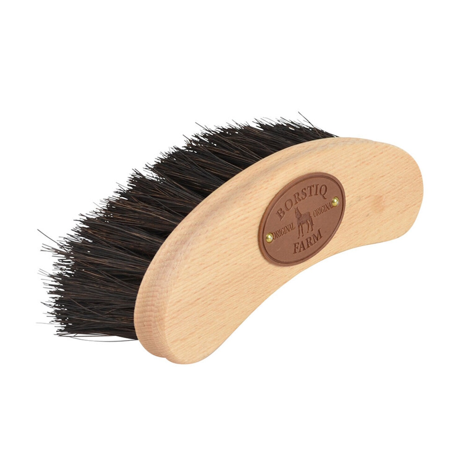 Bananformad, ergonomisk borste som passar perfekt i din hand, tillverkad av bokträ och Arenga. Arenga borsten har en hårdhet i borsten mellan Bassine och Polypropylene, vilket gör den perfekt för hårdare smuts och lera.