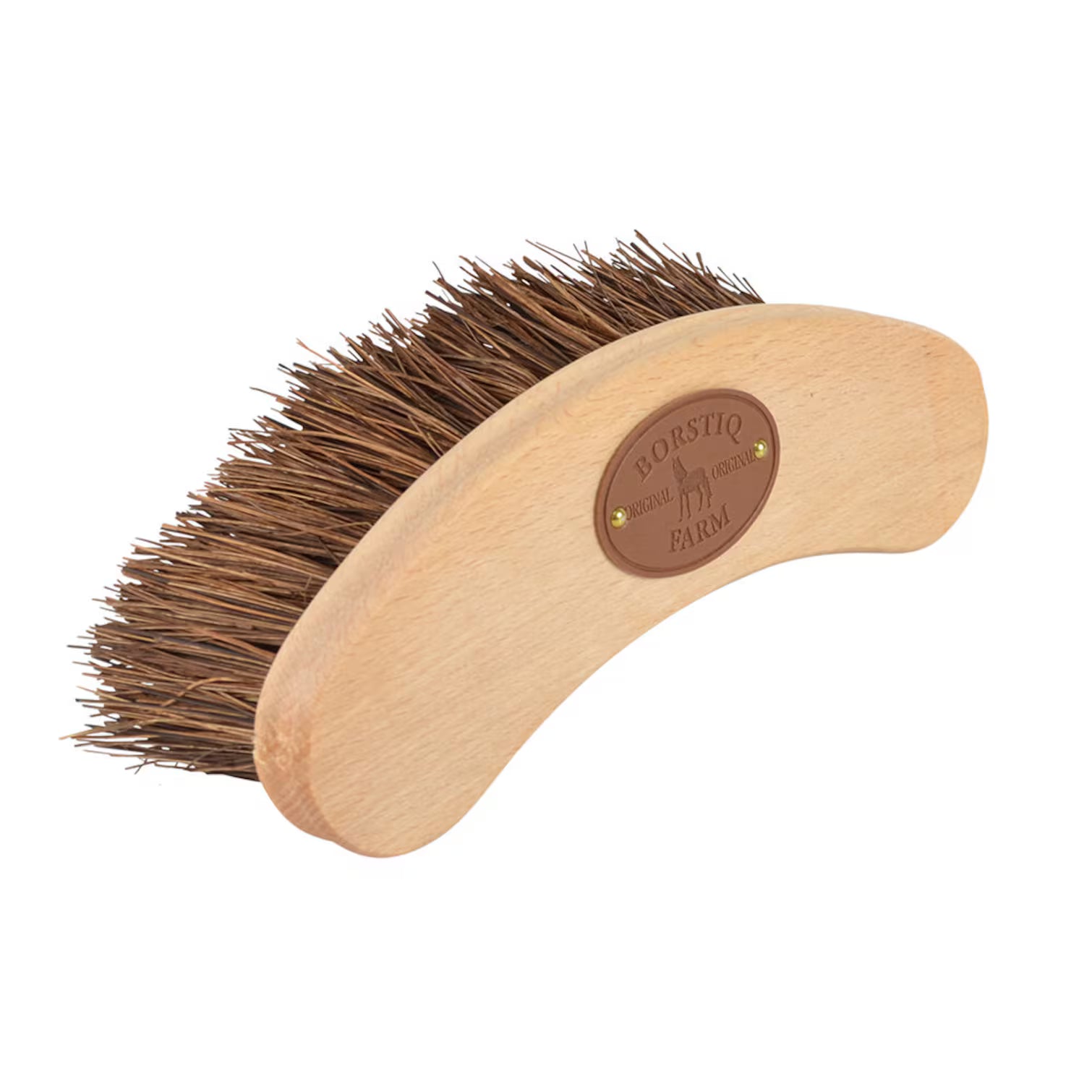 Hästviska tillverkad av naturfibern Bassine. Denna borste är ergonomiskt utformad för att ligga bra i handen och ge effektiva borsttag. Hästviskan Bassine passar utmärkt att ta bort lera med då borststråna är hårda och kraftiga.