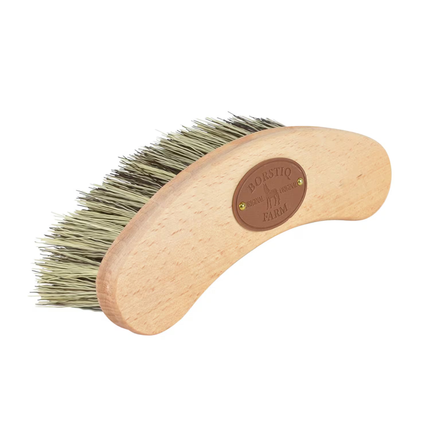 Bananformad, ergonomisk borste gjord av bokträ och polypropen, PP-fiber. Perfekt för vardagsvård.