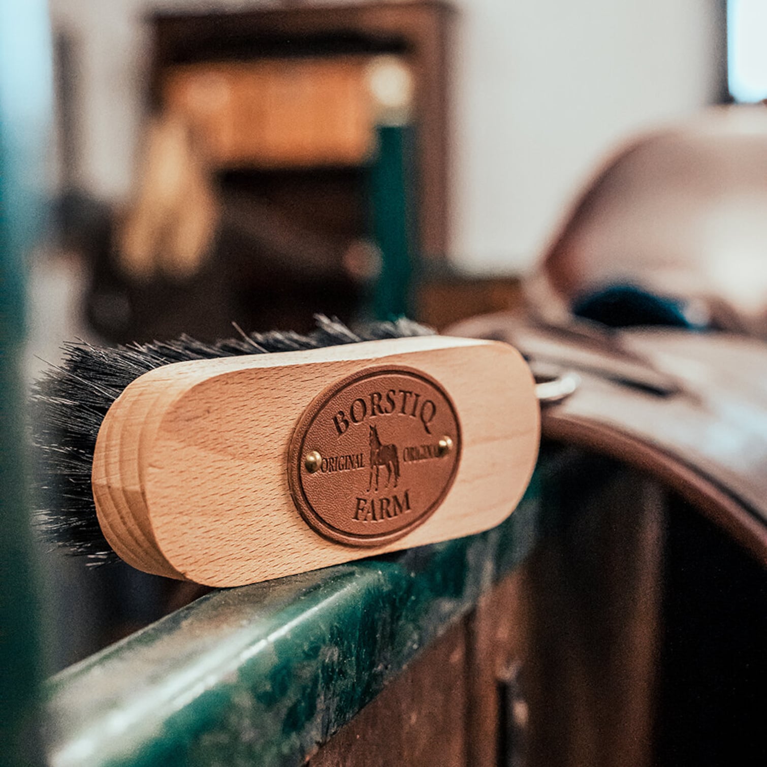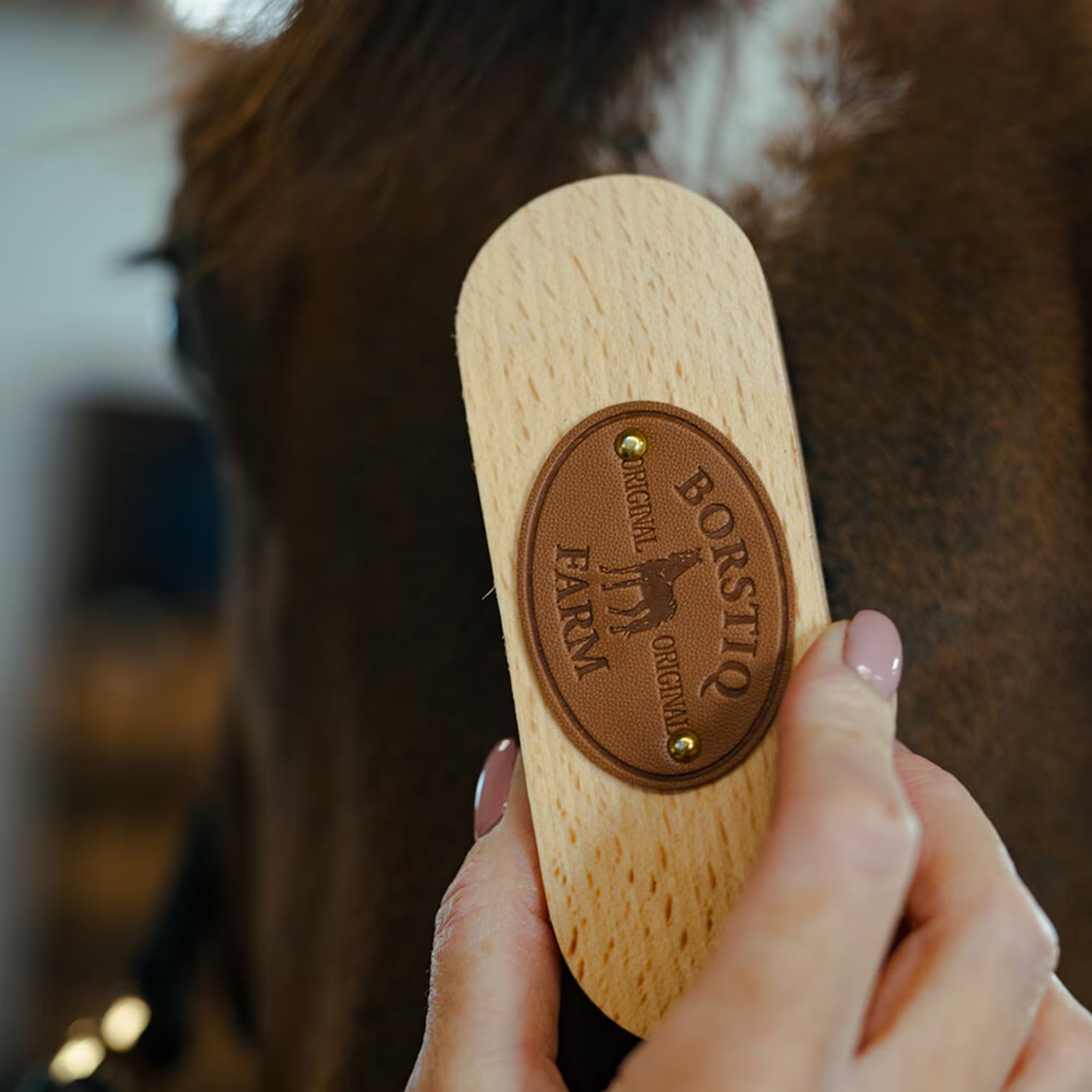 En antistatisk liten huvudborste gjord av bokträ och borst av polypropen, PP-fiber.