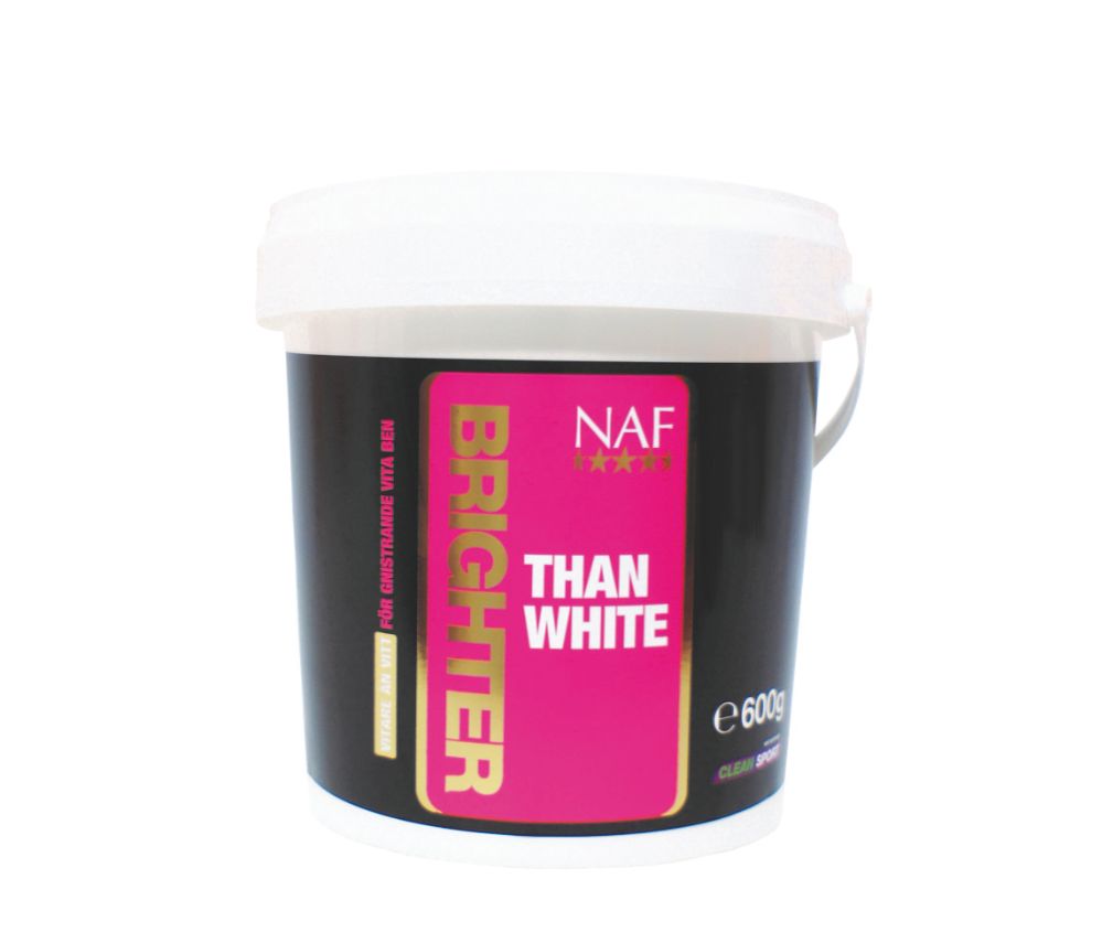 Vitare än vitt. Vitgörande pulver för att skapa gristrande vita ben. Skapa en perfekt finish genom att använda Brighter than White på hästens vita ben, päls eller svans. Blandas med vatten till önskad konsistens alt applicera pulvret direkt på våt päls.