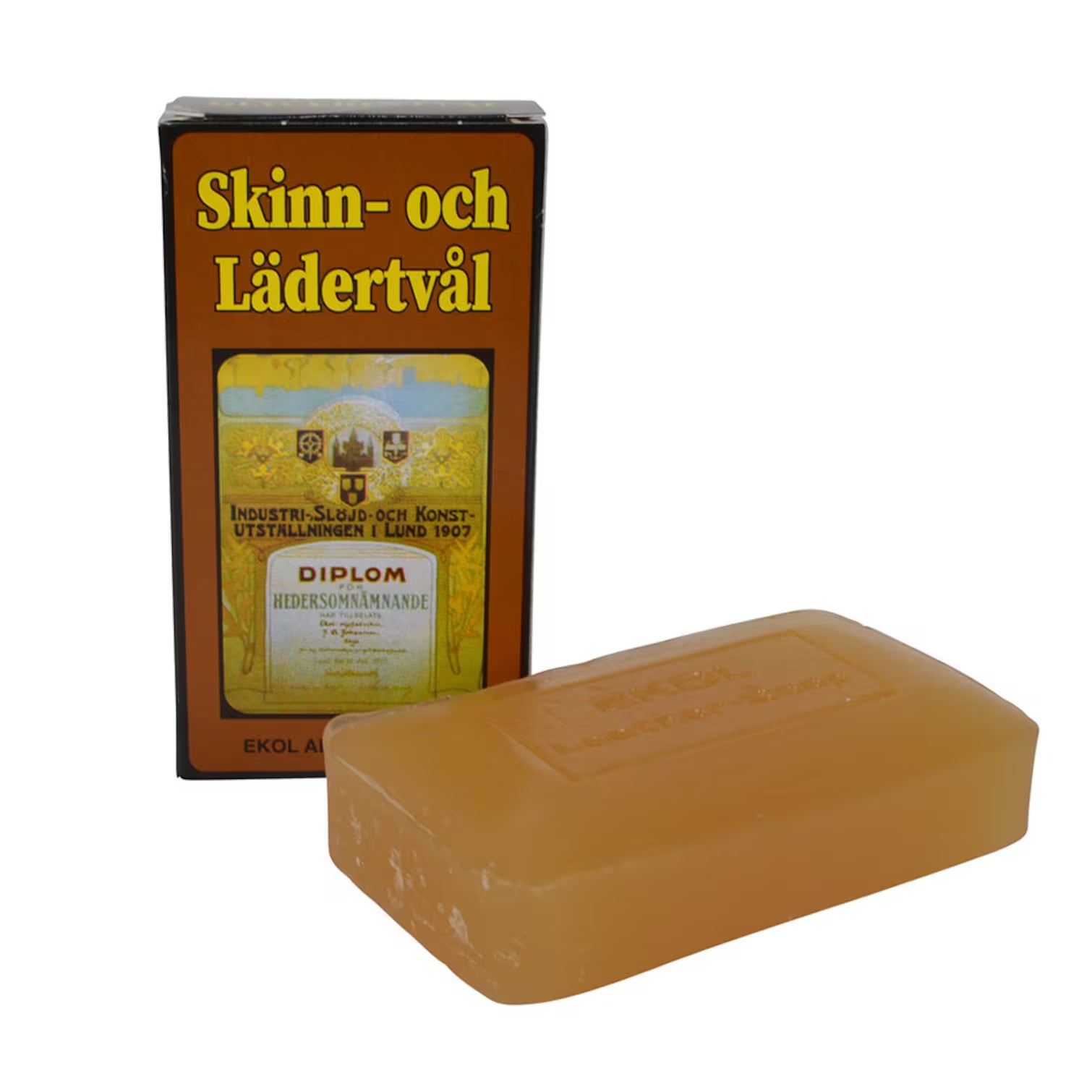 Tvål i fast form för rengöring och underhåll av läderprodukter. Med en fuktig svamp överföres tvål gradvis på lädret som bearbetas väl. Torka torrt och polera med torr, mjuk putsduk.