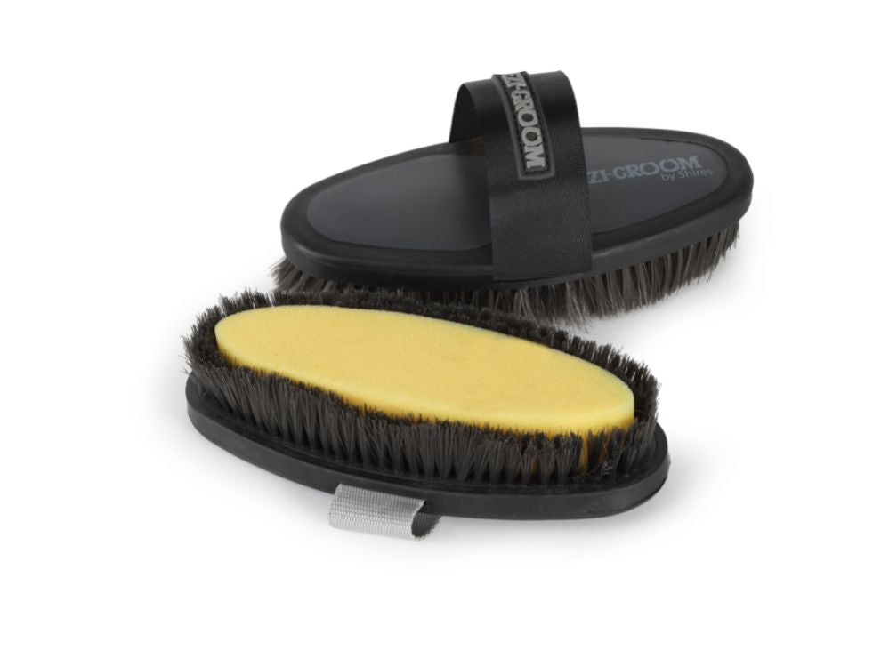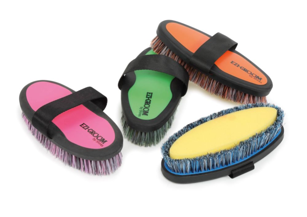 Superpraktisk borste med en integrerad tvättsvamp. Perfekt att använda vid schamponering av hästen. Ezi-groom borsten blir en härlig färgklick i stallet och bidrar med ettfantastiskt grepp och passform i handen.