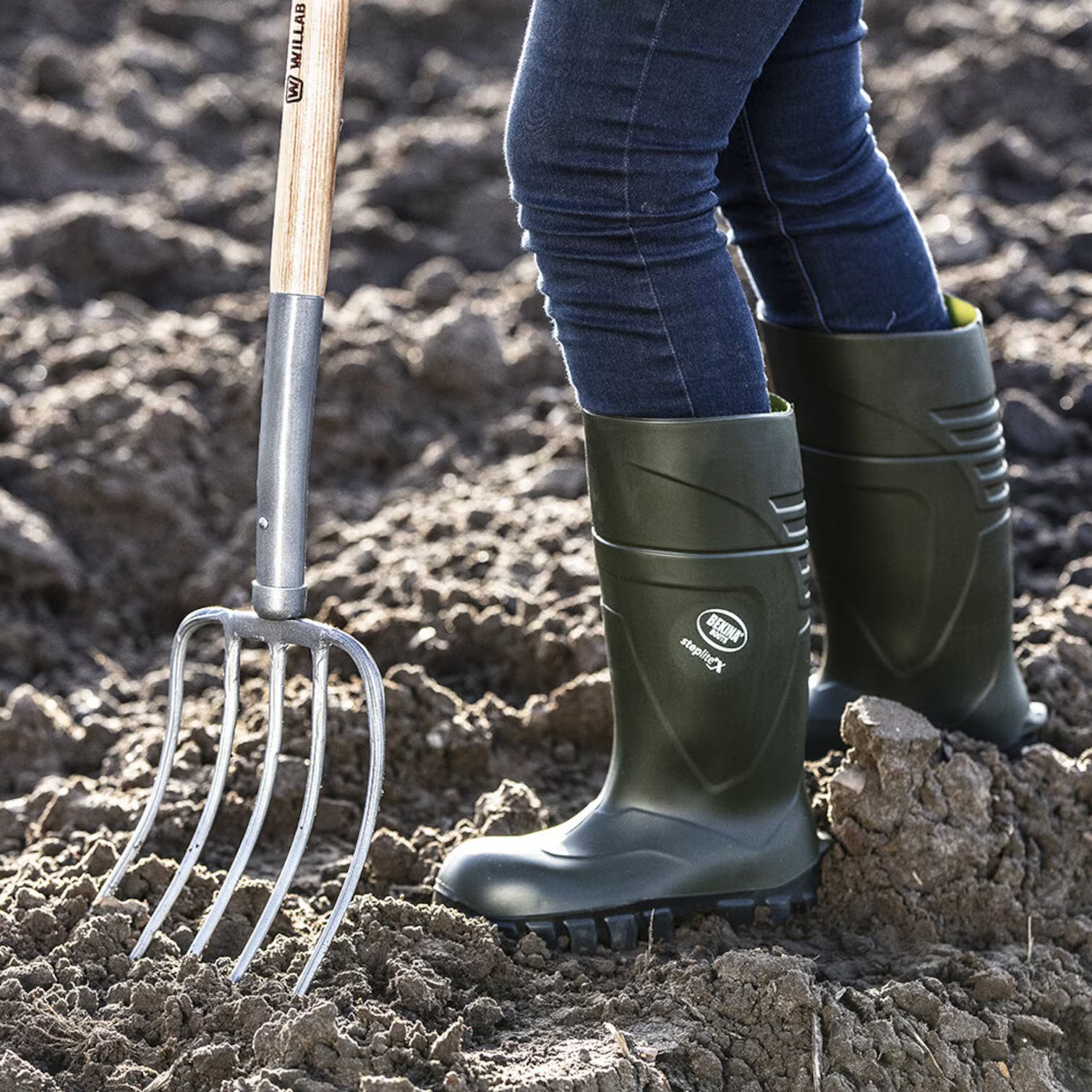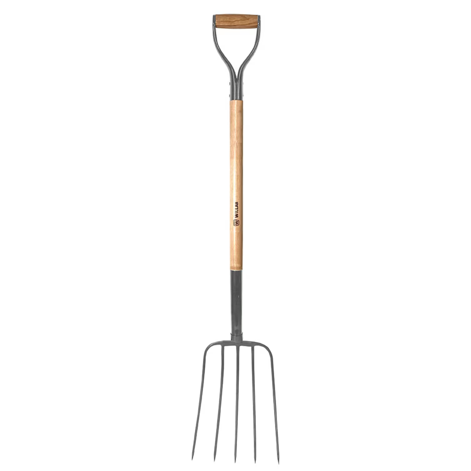 Grafitgrå stålklor, träskaft i ask och D-handtag i stål och trä. Skaftets Ø 37 mm, total längd 1120 mm.
