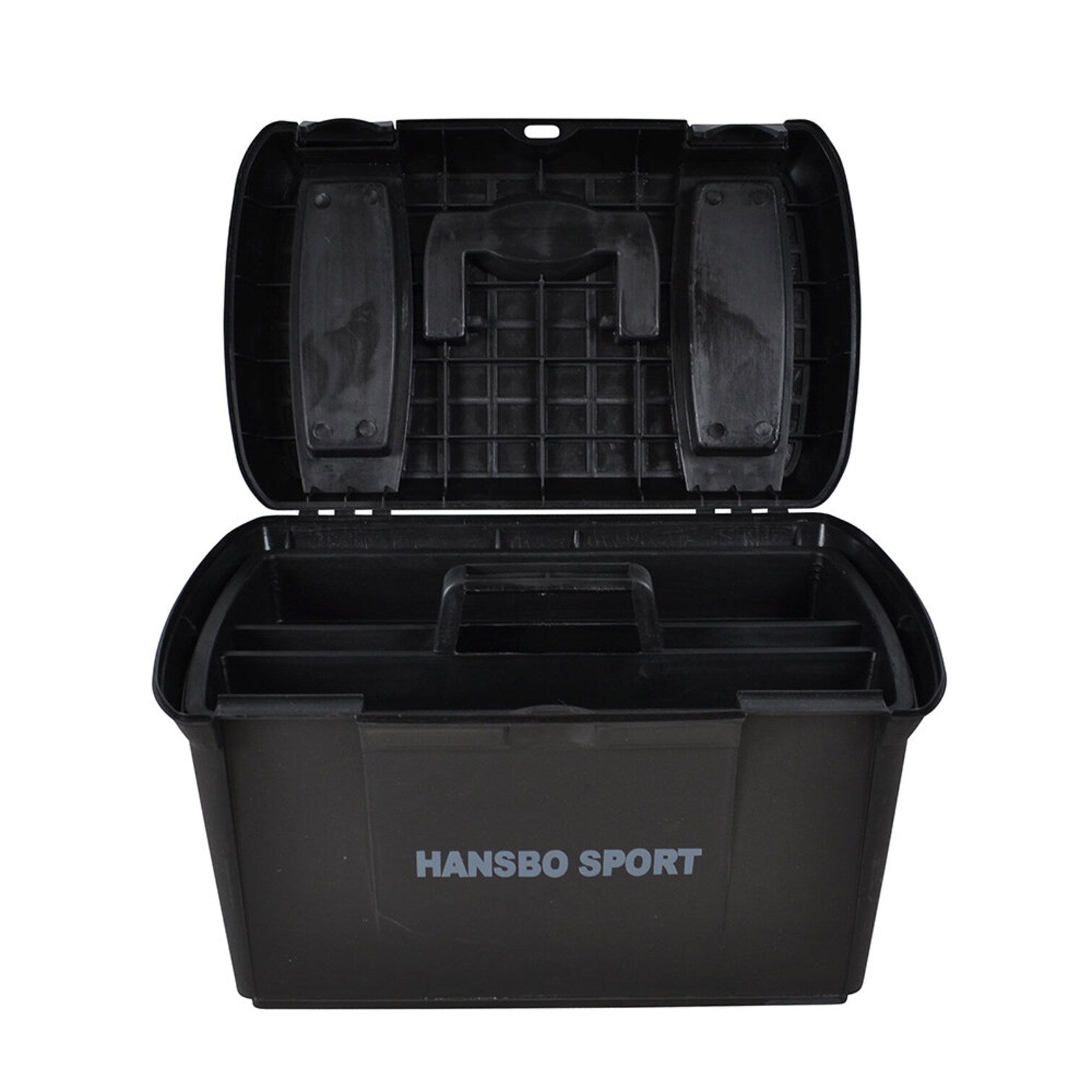 Praktisk ryktbox i slagtålig plast, med en mängd fack som gör det enkelt och tydligt vid förvaring av borstar och andra vårdprodukter, var sak på sin plats! Ryktboxen kan även användas som pall för den mindre ryttaren, upp till 40 kg.