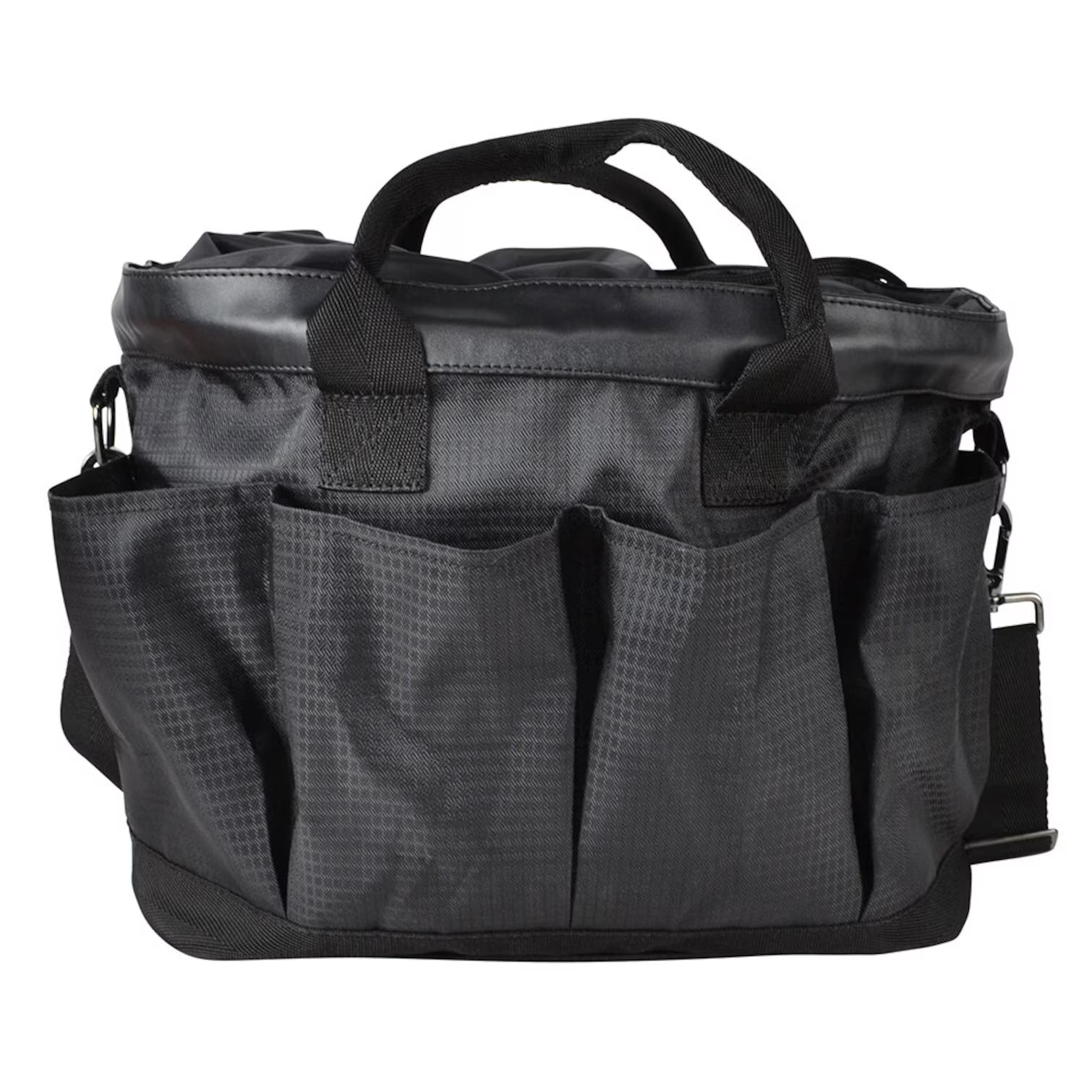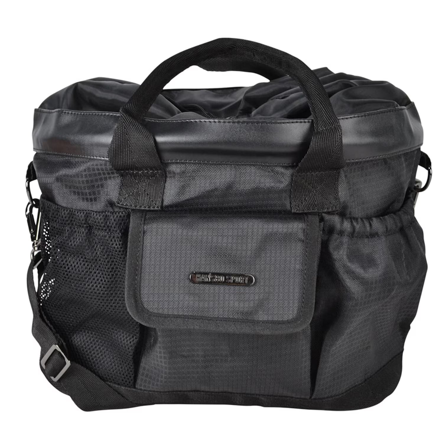 Praktisk ryktväska i exklusiv ett glansigt slittåligt material med diskret hundtandsmönster. Väskan har flera fickor runt om och inuti för enkel organisering av ryktstundens alla tillbehör. Försluts enkelt med dragsko. Justerbart axelband och handtag som gör väskan enkel att bära med sig. Dekorerad med silverfärgad Hansbo Sport logga.