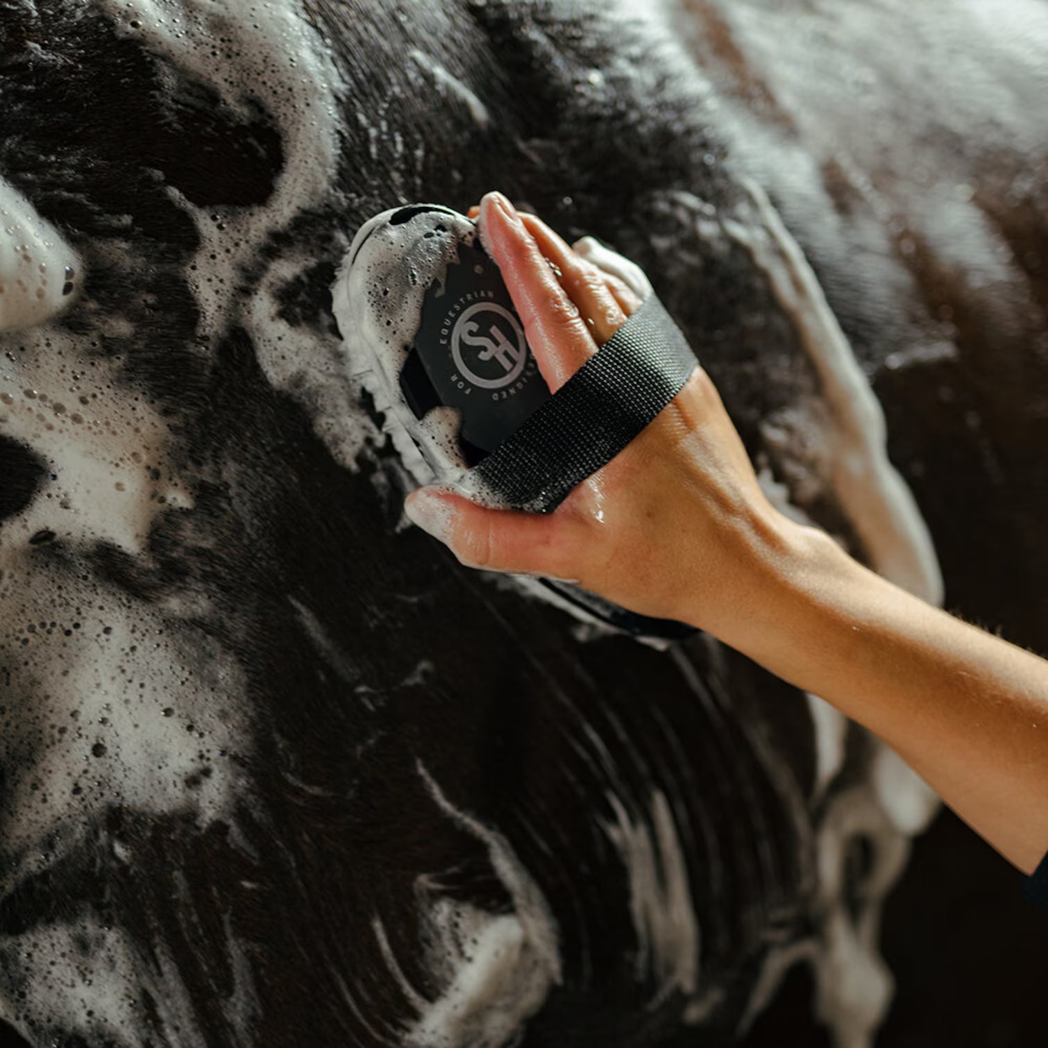 Funktionell tvätt/duschborste med integrerad tvättsvamp. Perfekt att använda vid schamponering av hästen.