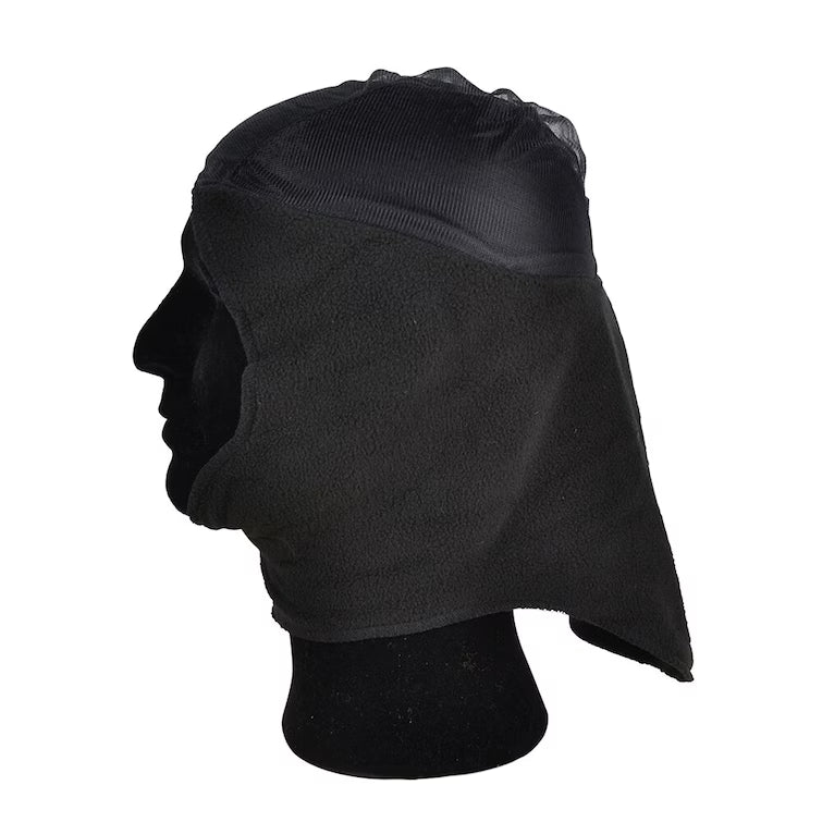 Hettan i praktisk väpnarmodell är av mjukaste fleece, med ett tunt fodertyg under hjälmen. Värmer gott runt hals och öron - oumbärlig under kalla dagar!