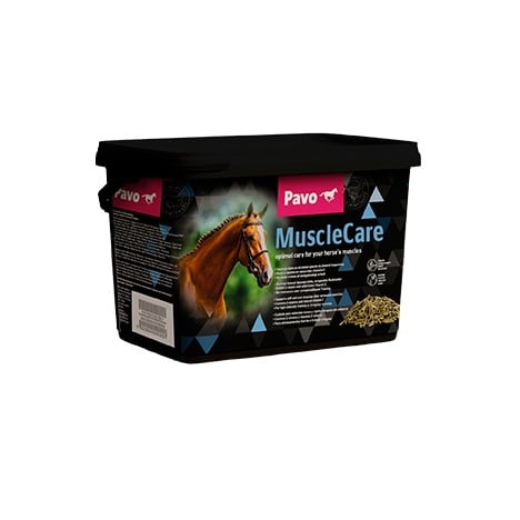 Hästar som lätt mjölksyra eller stela och spända muskler får hjälp av Pavo MuscleCare som påskyndar nedbrytningen av slaggprodukter i musklerna och minskar risken för mjölksyra.