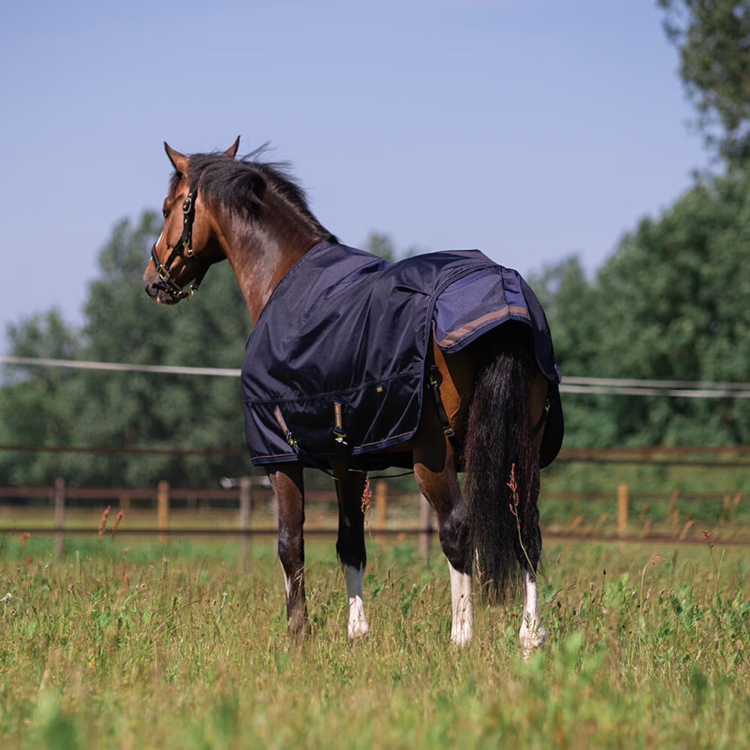 Regntäcke i 1200 D ballistik polyester. Vattentäthet och andbarhet > 5000. 70 D polyesterfoder. Låga kryssgjordar med dold elasticitet och gummiring. Dolda fästen för halstäcke. Kryssbelagda frontspännen för optimal passform.