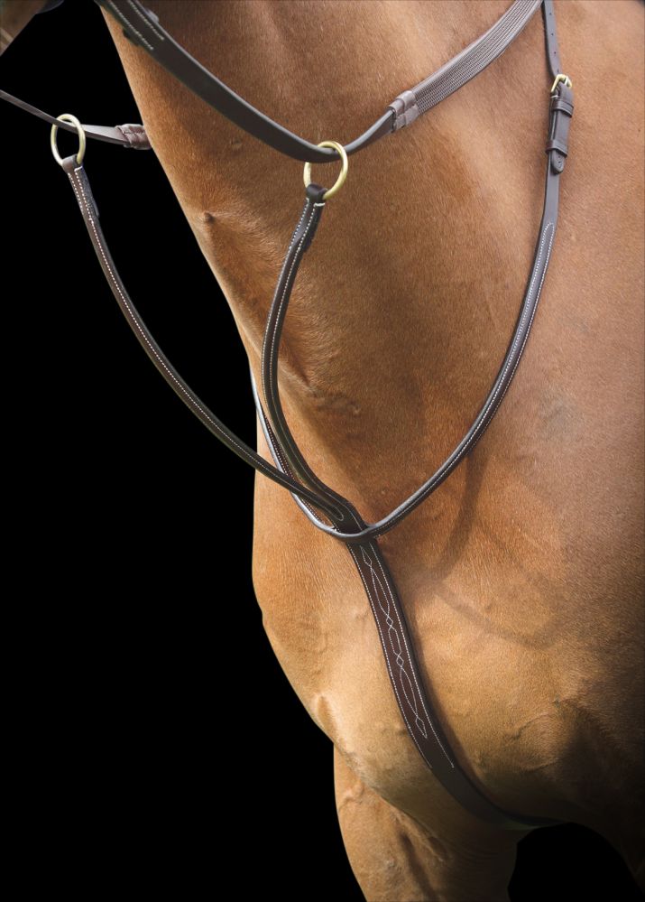 Martingal som karaktäriseras av vacker vit mönstersöm på lädret. Mycket fin läderkvalitet med ECO-vänlig vegetabilisk färgning av lädret.