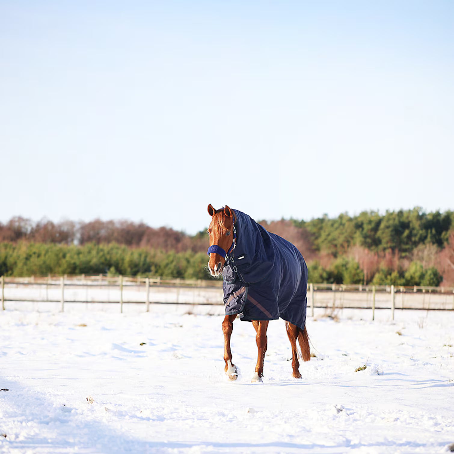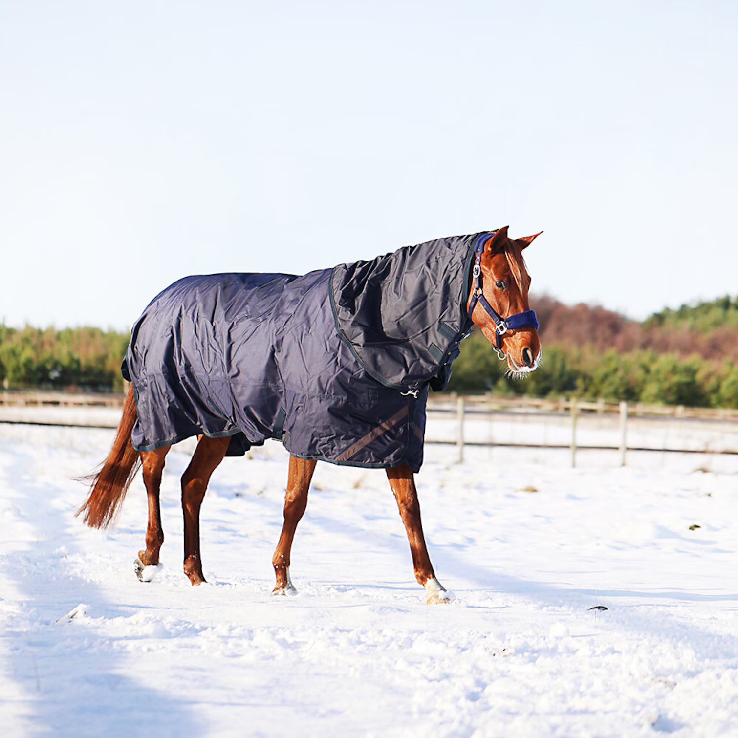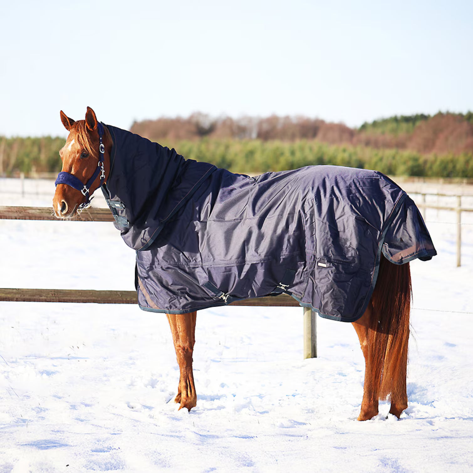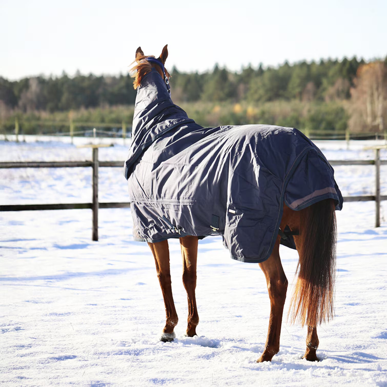 Vintertäcke i 1200 D ballistik polyester. Vattentäthet och andbarhet > 5000. 70 D polyesterfoder. Låga kryssgjordar med dold elasticitet och gummiring. Dolda fästen för halstäcke. Kryssbelagda frontspännen för bästa passform.